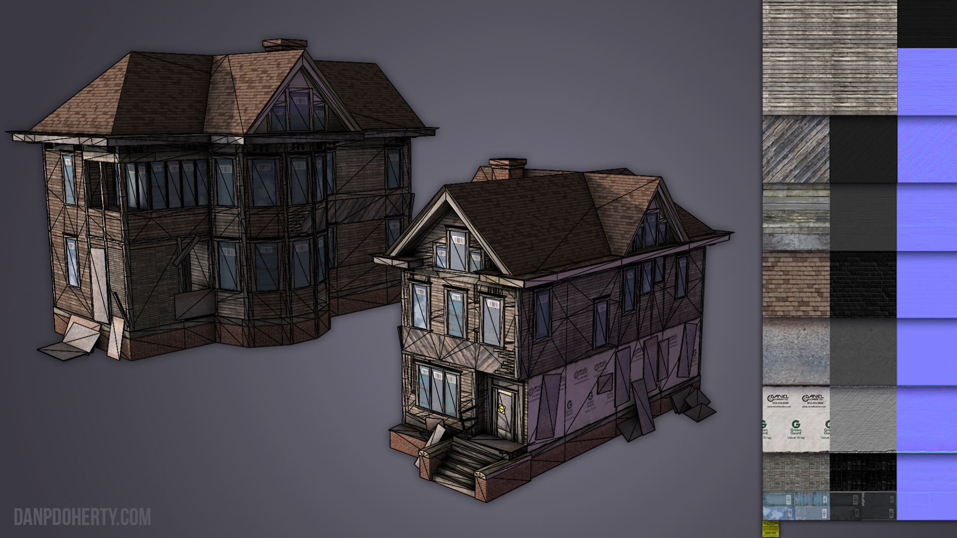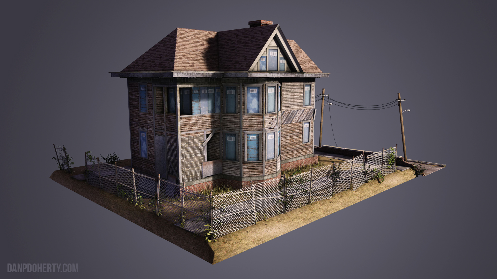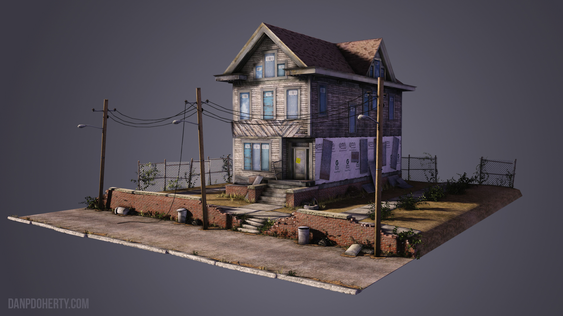 This was created after a dilapidated house in Savannah, GA on the corner of Acton Ct. and Martin Luther King Jr. Blvd. It was demolished about a year after I created this. It was all set and rendered in Epic's Unreal Development Kit and it was textured and modeled using Photoshop and Maya.