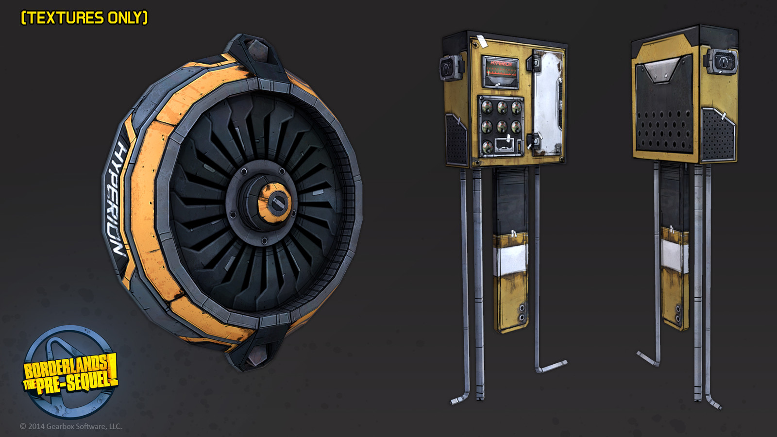 These are some of the prop and environment pieces I made for Borderlands: The Pre-Sequel!. I've always been a fan of the style of the Borderland universe and I am honored that I got a chance to contribute some of my art into the series. Here are textures I made for some small assets. The model was created by other Gearbox artists.